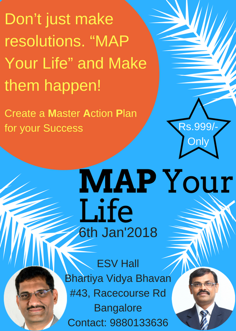 Book Online Tickets for MAP Your Life  - Goal setting work shop, Bengaluru. Many of us make resolutions in the begining of every year and midway we lose foucs and and fizzle out.If you want to avoid frustration and unhappiness of missing the goal,you should create a \